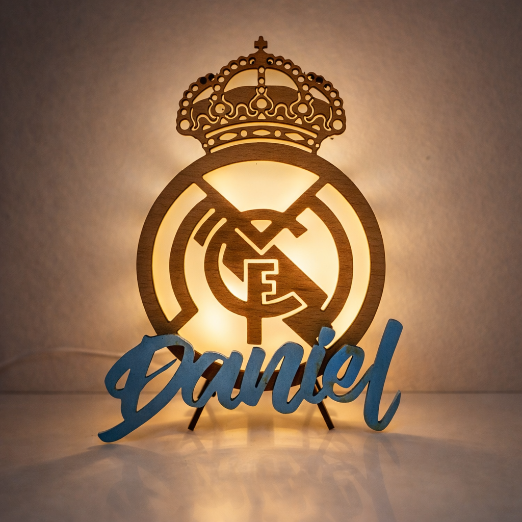 Lámpara quitamiedos real madrid personalizada de madera